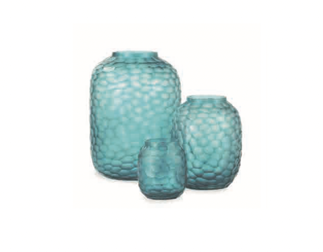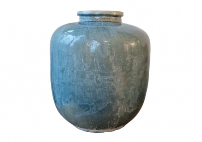 Apdaila: rankų darbo keramikinė vaza, dengta mėlyna glazūra