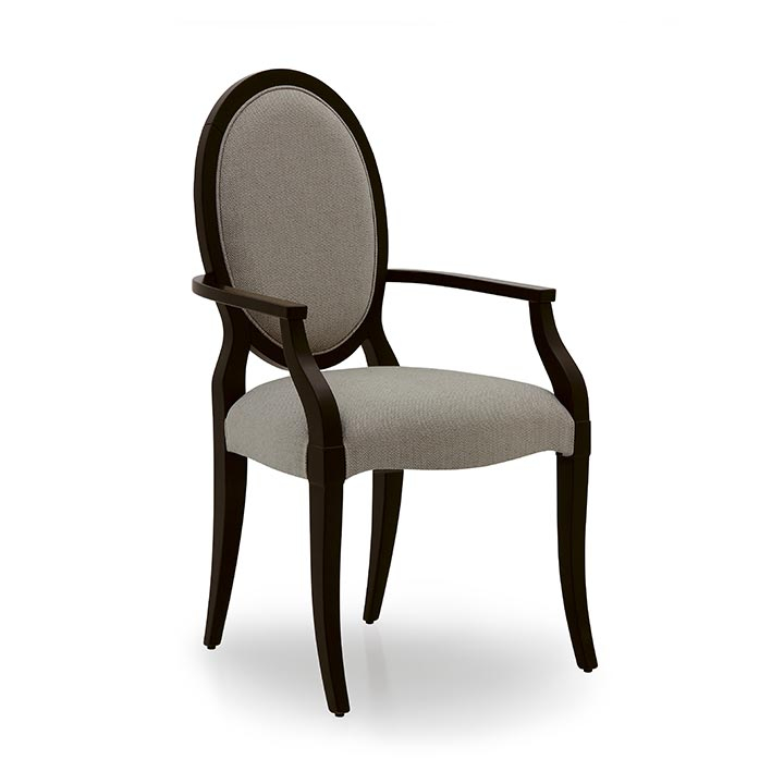 Matilde is a contemporary dining chair, with a solid beech wood structure. The seat and the back are padded for a top level of comfort. For the upholstery we offer a wide selections of fabrics, leathers and ecoleathers, You can also send us your own material "COM". 100% made in Italy.