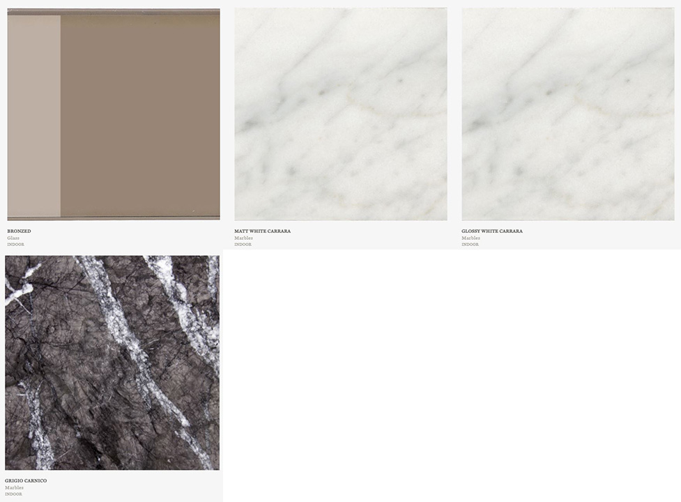 Stalviršis: tonuotas stiklas, baltas arba juodas marmuras, riešutmedis