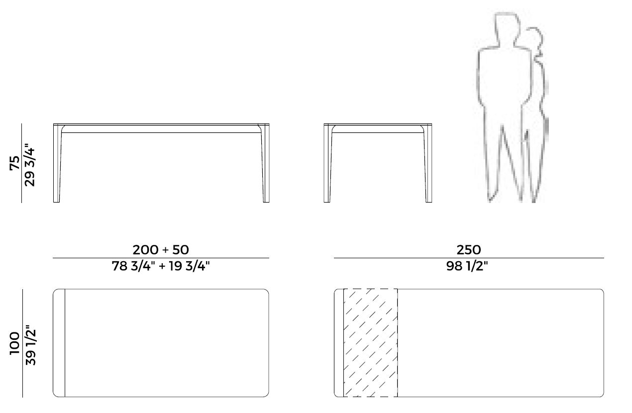 200 x 100 x 75 (h) cm; (išdidinamas iki 250 cm)