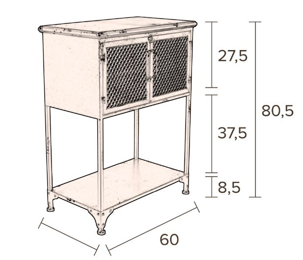 60 × 34, 5× 80,5 (h) cm; Juoda